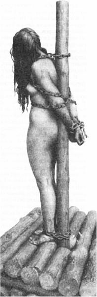Поначалу все шло, как заведено. Женщина помолилась. Её надёжно привязали к столбу.
