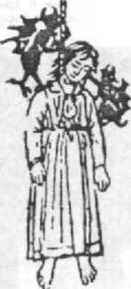 Черти забирают душу повешенной крестьянки. Гравюра. 1520 г. Фрагмент.