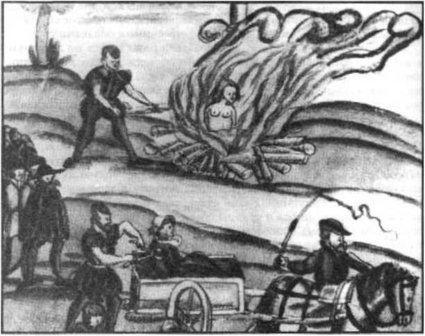 С другой стороны, известно — иногда мужеубийцу душили, прежде чем пламя охватит одежду. Вот описание казни, состоявшейся в 1722 году.