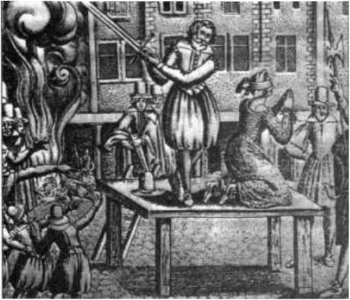 К счастью, были страны, где сожжение заживо так и не стало нормой. Теоретически считается, что в Англии ведьм не сжигали вообще. Английское законодательство предусматривало виселицу за колдовство. И действительно — смерть в петле была здесь типичным концом для тех, кому ставили в вину порчу. Тем не менее имеется одна тонкость. Вплоть до 1790 года существовал закон о сожжении женщин за «измену» (Babington, 1968 стр. 39). Под эту статью порой и подводили ведьм. Разумеется, англичане не были настолько ревнивы, чтобы казнить за супружескую неверность. Закон имел в виду тот случай, когда жена убьёт мужа или служанка хозяина. Причём тут чародейки? А притом, что в те времена часто смешивались понятия «убить» и «околдовать». Смерть мужа от внезапной болезни легко приписывалась чарам. 9 сентября 1645 года в Ипсвиче была сожжена матушка Лейкленд за убийство своего мужа при помощи колдовства. Подобным же образом была наказана в Норвиче Мэй Оливер (Robbins, 1959 стр. 510).