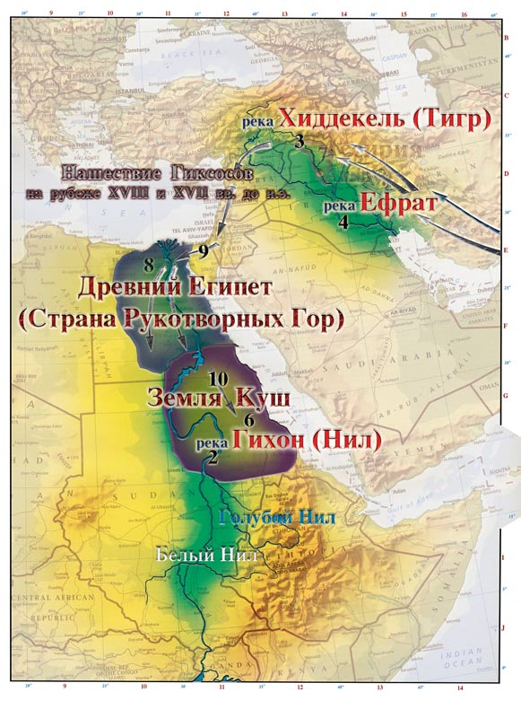 ВЕТХИЙ ЗАВЕТ указывает на НОВЫЕ САКРАЛЬНЫЕ ЦЕНТРЫ ЧЁРНОЙ МАТЕРИ — ЕДЕМЫ — главным по значимости, фактически новым центром становится «РАЙ» в верховьях Нила — ГИХОНА в ЗЕМЛЕ КУШ.