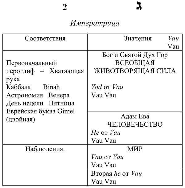 Третья карта Таро показывает итог воплощения двух первых элементов, нейтрализующих друг друга в одном начале. Это нейтральный элемент Вронского, основа всей системы реальности.
