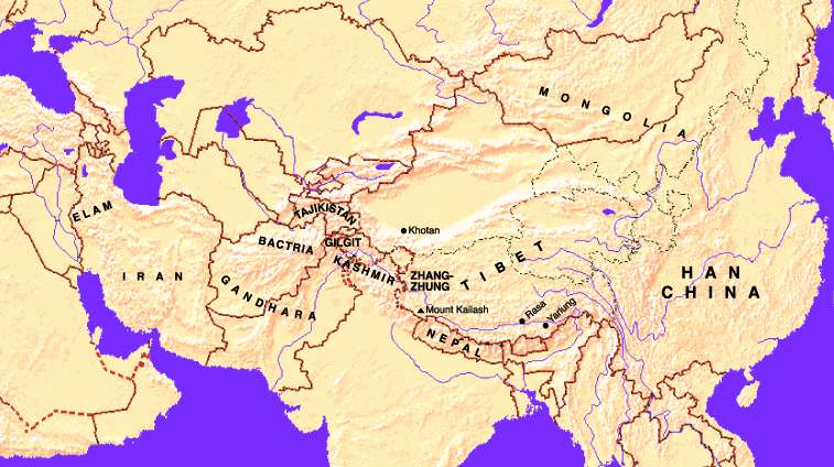 Можно возразить, что шанг-шунгская форма, тагзиг, произошла от среднеперсидского «тазиг», использовавшегося в ранний период империи Сасанидов (226 – 650 гг.), в которую входил не только Иран, но и Бактрия. В конце концов, Сасаниды были убежденными зороастрийцами, а город Балх в Бактрии был местом, где родился Зороастр (Заратустра). Более того, Сасаниды терпимо относились к буддизму в Бактрии, где он прочно установился на несколько столетий. Поскольку ранний бон имел много особенностей, напоминавших дуализм зороастризма (прим. пер.: противостояние добра и зла) и буддизм, то утверждение бона о том, что его сходные с буддийскими аспекты предшествуют по времени императору Сонгцену Гампо и происходят из Тагзига, кажется правдоподобным.