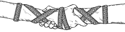 Самое главное – захватите красную и белую ленты; все остальное – диадемы, кольца, цветочные венки – по желанию. Самое важное в этом ритуале – сказать слова искренне, от всего сердца и пожать друг другу руки, связав их лентой. Этот магический контракт соединит вас на год и один день. Во время обматывания лентами можно произнести такие слова: «Клянешься ли ты… (имя), защищать и любить, хвалить и почитать как божество и жить в единстве с… (имя), пока между вами есть любовь».