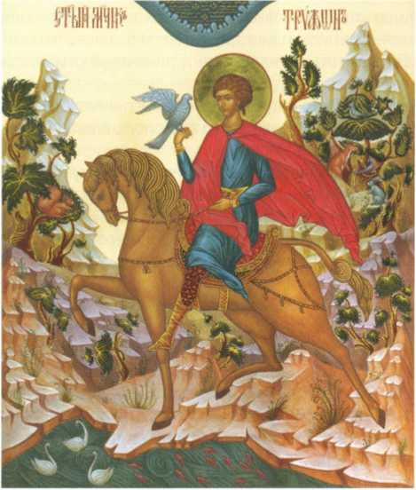 — Никто не может изгнать меня отсюда, кроме отрока Трифона. Царь тотчас послал искать повсюду Трифона. Много было приводимо к царю людей, носивших то же имя, но ни один из них не мог изгнать беса из царской дочери. Наконец привели к царю святого отрока Трифона, которого нашли во Фригии, в селении Кампсаде, где он пас гусей при одном озере, — отроку было тогда семнадцать лет. Когда святой приближался к Риму, диавол, узнав об его приходе и начав еще сильнее мучить девицу, громко закричал:
