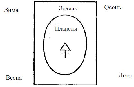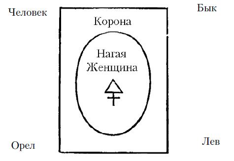 Это же правило используется во всех применениях Таро. Так, если взять астрономию, четыре изображения будут четырьмя временами года, корона – Зодиаком, а обнаженная женщина (Ева) – одушевленной системой Зодиака, планет; т. е.: