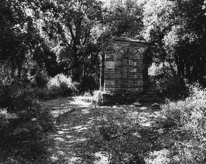 Но усталость взяла свое, и мы уснули, махнув рукой и на кабанов, и на волков, и на всякую нечисть. Усталость неплохо примиряет с окружающим миром. Утром оказалось, что мы спали на развилке и рядом находились обломки указателя, на котором было написано «Зограф — Есфигмен». Дело в том, что новые дороги выполняют еще одну недостойную миссию: они сокрушают на своем пути старые, веками существовавшие тропы; уничтожают целые куски дорог, которые с любовью многие десятилетия выкладывали предшественники нынешней афонской братии. Поэтому мы, сориентировавшись по карте, решили идти по руслу пересохшего ручья, который точно выведет к Зографу. Пока мы шли по ручью, Костя вспоминал многочисленные случаи из своей охотничьей практики. Ему приходилось бывать в разных переделках. Вот наконец мы нашли небольшую лужицу, уцелевшую благодаря каменной нише, — очевидно, место паломничества представителей здешней фауны. Мы немного поели, именно немного, потому что есть почему-то особенно и не хотелось. Снова пошли и тут за поворотом увидели буквально чудо.