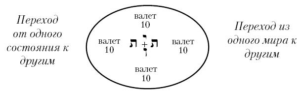 Чтобы представить этот порядок в виде синтетической схемы, надо поместить Священное Имя в центре круга, разделенного на четыре части, каждая из которых соответствует буквам yod-he-vau-he. В каждой четверти из центра круга лучами будут расходиться карты, аналогичные буквам Тетраграмматона.