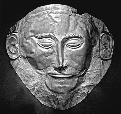 Посмертная маска воина (рис. 35), найденная в Микенах (названная Генрихом Шлиманом «Маской Агамемнона»), свидетельствует о том, что у индоевропейцев были грубые, крепкие тела, в отличие от эгейцев, обладавших более хрупким телосложением. Две различные расы слились воедино в новой микенской культуре.