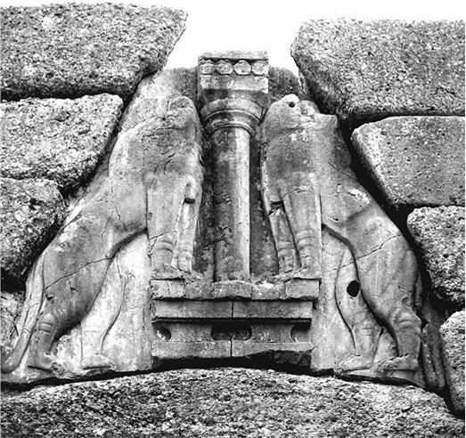 Рис. 36. Львиные ворота в Микенах (резьба по камню, Греция, 1500 лет до н. э.)
