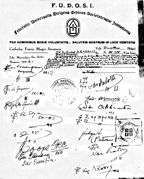 Интересно отметить, что Виктор Бланшард (1878 – 1953) был назначен Императором Востока F.U.D.O.S.I. (в то время как Льюис был Императором Америки, а Дантинн – Императором Европы). Может ли это иметь отношение к R.C.O.? Этот тайный орден упоминается также Саром Аурифером (Робертом Амбеленом) в его «Sacrementaire de la Rose-Croix» – сборнике заклинаний и молитв. Существует предание, что именно в этом ордене Сен-Мартен был посвящен в розенкрейцеры. Возможно, он происходит от Ордена Азиатских Братьев, описанном Уэйтом в его книге «Братство Розы-Креста». Амбелен являлся главой R.C.O. вплоть до своей смерти.