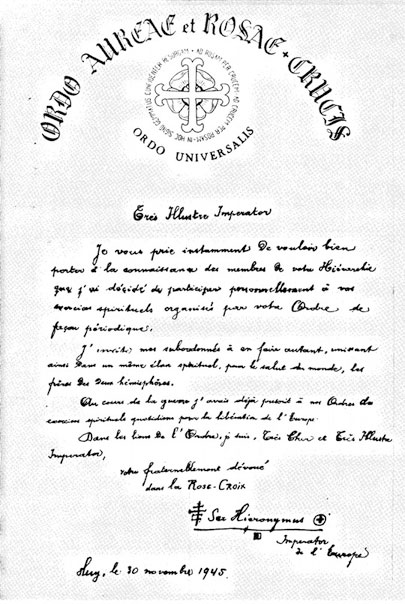 В Париже легендарный алхимик Франсуа Жолливе Кастельо (1868-1937) управлял местным отделением Ордена. И Харвей, и Ральф Льюис из A.M.O.R.C. были инициированы Дантинном в степень Императора Розенкрейцеров (13-ая степень иллюминации, немного напоминающая степень I.L. в мартинизме) в Европе.