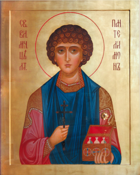 Икона великомученика и целителя Пантелеимона с частицей мощей