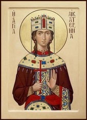 Возмогла еси Крестом мучителей разрушити державу, и мирския мудрости обличивши суету, Богодохновеннаго учения точащи догматы, велемудренная Екатерино приснопамятная.