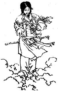 Ниниги сходит с небес на землю на вершине горы Химука, которая находится на острове Кюсю[9]. Здесь же он строит свой дворец и. вскоре женится на дочке местного божества, которое на радостях от такой высокой чести дает в придачу к своей младшей дочери по имени Ко-но-хана (Цветенье Деревьев), приглянувшейся Ниниги, еще и ее старшую сестру — Иванага (Долговечная Как Скала). Правда, она столь некрасива, что Ниниги тут же отсылает ее обратно. Обиженный отец сообщает, что отныне жизнь императоров и их потомков будет коротка, как цветенье деревьев по весне, тогда как если бы Ниниги оставил у себя и вторую дочь, то потомки наслаждались бы еще и долголетием «как скалы»[10].