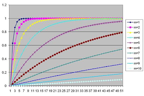 Графически эта зависимость представлена на рисунке 11. Из рисунка видно, что чем больше масса объекта, тем медленнее растёт плотность эфира при удалении от центра шара. В предельных случаях: при массе объекта – m, стремящейся к нулю, плотность эфира – рt стремится к р, а при m, стремящейся к бесконечности, плотность рt стремится к нулю.