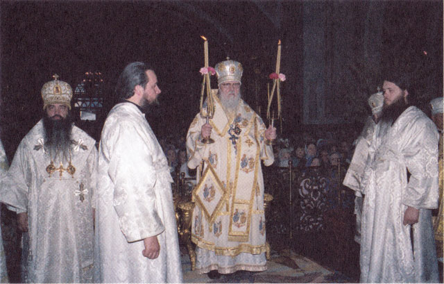 Когда после долгой болезни Патриарх Пимен, с трудом передвигая ноги, появился в Богоявленском соборе, прихожане радовались за него и говорили с воодушевлением, что служба Божия для него драгоценна, что не служить для Предстоятеля — в тягость.