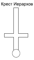 Крест Высших Иерархов (рис. 13) – Учителей человечества – это верхняя часть креста, находящаяся за большой горизонталью и символизирующая бесконечное развитие сознания в Высших сферах и по горизонтали, и вверх. Нижняя вертикаль креста Иерархов заканчивается шариком, говорящим, что развития вниз, назад, для них быть не может. Но всё это смысловая трактовка, необходимая для бытового понимания людьми того, что дано им Свыше, и под чем фактически скрываются глубинные энергетические процессы.