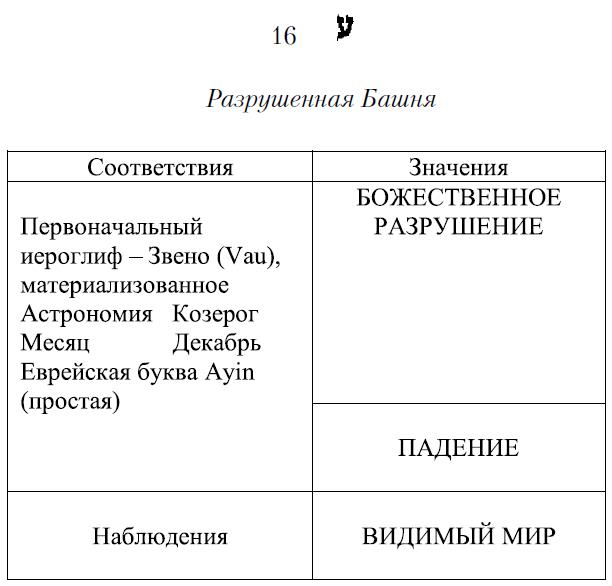 Все обозначения этой карты происходят из идеи падения, материализации духовной буквы (Vau).