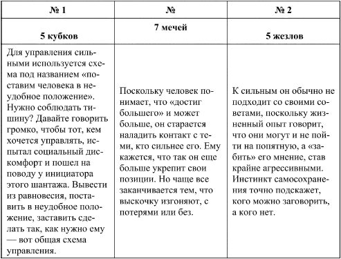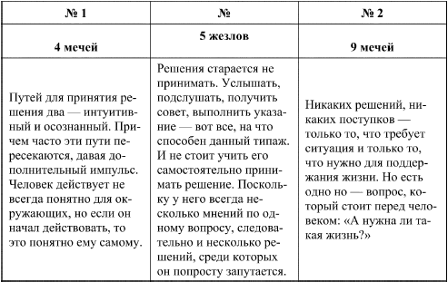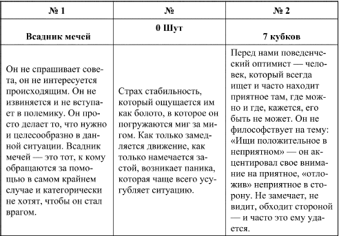 Примеры. Они даны в расчете на существующий расклад как деталь расклада. Вы можете соотнести их с примерами, приведенными выше, для того чтобы увидеть, как происходит детализация значения карты. Карты № 1 и № 2 намеренно расположены ниже – это демонстрация того, что они лишь уточняют №, но не подавляют ее значение или не находятся на одном уровне.