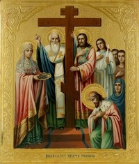 В тебе, треблаженне и жизнодавче Кресте, людие учреждающеся, спразднуют с невещественными лики; чини архиерейстии благоговейно воспевают, множество же монашествующих и постников покланяются, Христа же распеншагося вси славим.