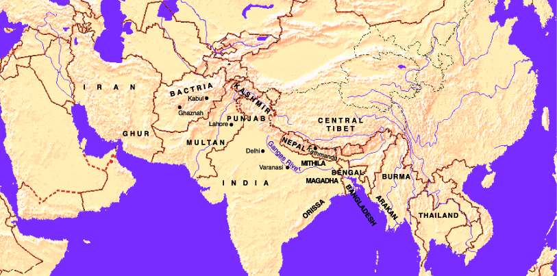 Карта № 30: полуостров Индостан во времена завоевания Гуридами, конец XII века