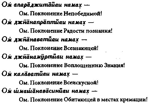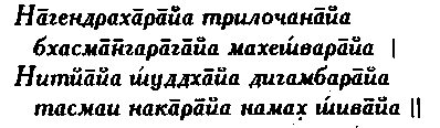 Смиренно поклоняюсь Бестелесному, сущности священного слога «ом», Трансцендентному, Владыке гор, непрестанно воспеваемому Господу, Ужасающему Махакале, Сострадательному, Превосходящему Собой всю сансару.