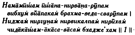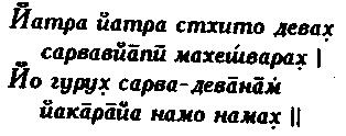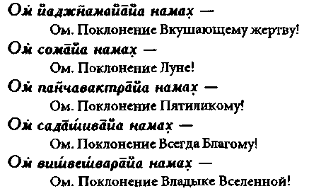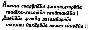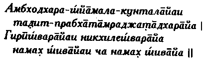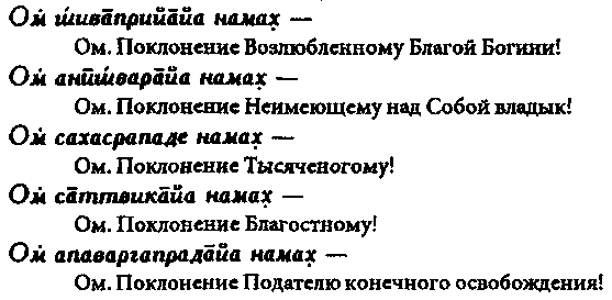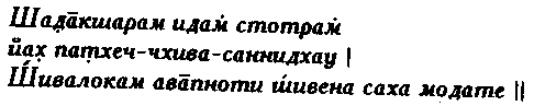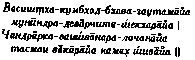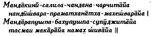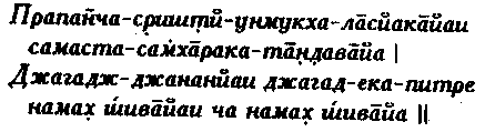 Всенаполняющему Махешваре, воплощенному в слоге «йа», Богу, обладающему формой и лишенному формы, наставнику мудрейших, где бы Он ни пребывал, да поклонимся!