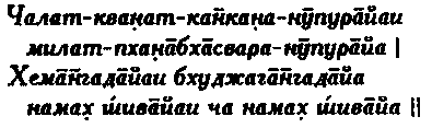 Той, Что носит прекрасные звенящие ножные браслеты, Тому, Чьи ноги, подобные лотосам, как браслеты, обвивают змеи; Той, на Чьих руках сверкают золотые браслеты, и Тому, на Чьих руках змеи, — Гаури и Господу Шиве да поклонимся!