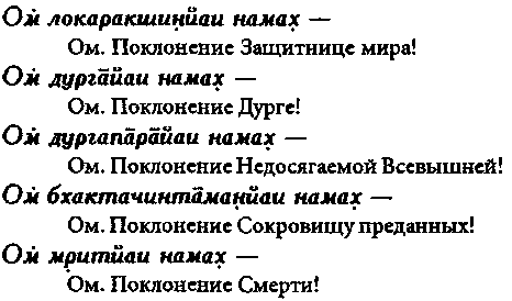 В споре и в борьбе, в беде, в других случаях, в воде и огне, в горах и среди врагов, в лесу, — везде, где ищу защиты — всегда помогай мне! Только Ты мое Прибежище, Ты — Прибежище, Ты Единственная, о Бхавани!