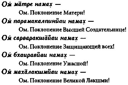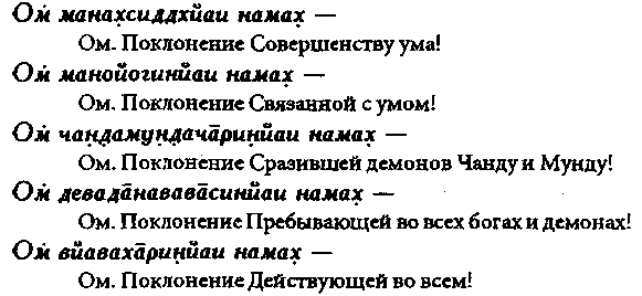 Великому Сияющему Бытию, воплощенному в слоге «ма», Трансцендентному Я, разрушителю многочисленных грехов и Высшему объекту почитания и медитации поклоняемся мы всегда вновь и вновь.