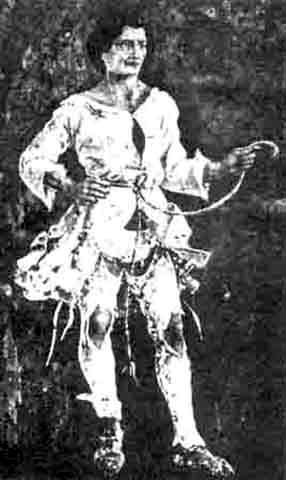 «Фигура человека с лицом и ногой ворона, сидящего на троне, имеющего в правой руке копье, а в левой дротик или стрелу».
