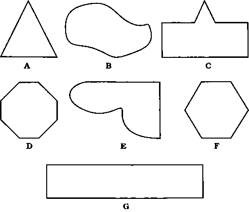 Участок треугольной формы (Л), или участок с тремя углами ассоциируется с негативной энергией — их лучше избегать. Другие нерегулярные формы (В, С, О, Е, Г) тоже не являются благоприятными. Узкий и длинный прямоугольный участок (С) также не подходит из-за своей диспропорциональности. У прямоугольника с хорошими пропорциями длина не должна более чем в два раза превосходить ширину.