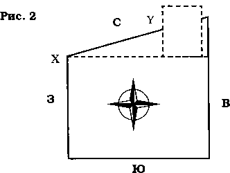 Хорошо, если участок имеет выступ на северо-востоке с восточной стороны (Рис. 1) или на северо-востоке с северной стороны (Рис. 2). Обратите внимание, что такие участки в основном имеют Р-образную форму. Однако участок может расширяться и по оси ХУ, как показано на схемах.