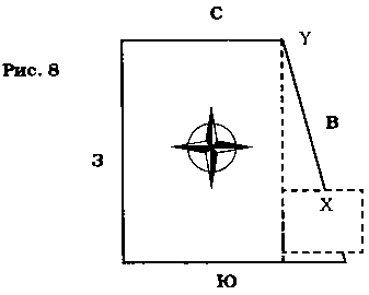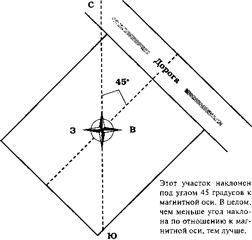О магнитной оси см. с. 20. Участок, расположенный по оси север-юг, то есть, сонаправленный с магнитной осью (пунктирная линия на рисунке) благоприятен.