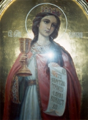 Святая славная и всехвальная великомученице Христова Варваро! Собраннии днесь в храме твоем Божественнем людие и раце мощей твоих покланяющиися и с любовию целующии, страдания же твоя мученическая и в их Самаго страстоположника Христа, давшаго тебе, не точию еже в Него веровати, но и еже по Нем страдати, похвалами ублажающе, молим тя, известная желания нашего ходатаице: моли с нами и о нас умоляемаго от Своего благоутробия Бога, да милостивно услышит нас, просящих Его благостыню, и не отставит от нас вся ко спасению и житию нуждная прошения, и дарует христианскую кончину животу нашему безболезненну, непостыдну, мирну, Божественных Таин причастну, и всем на всяком месте, во всякой скорби и обстоянии, требующим Его человеколюбия и помощи, великую Свою подаст милость, да благодатию Божиею и твоим теплым предстательством, душею и телом всегда здравии пребывающе, славим дивнаго во святых Своих Бога Израилева, не удаляющаго помощи Своея от нас всегда, ныне и присно и во веки веков. Аминь.