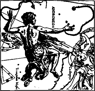 Как уже было сказано выше, греки образы фигур со Звёздной гиперборейской карты толковали по-своему. Вместо Коляды и Радуницы они видели Кефея и Кассиопею, царей Эфиопии. В распятой фигуре они признали дочь Кефея и Кассиопеи Андромеду, которую отдали на съедение чудовищу — его, по мнению греков, являет созвездие Кита. Образы созвездий этого участка неба греками были истолкованы как иллюстрация к мифу об Андромеде и Персее.