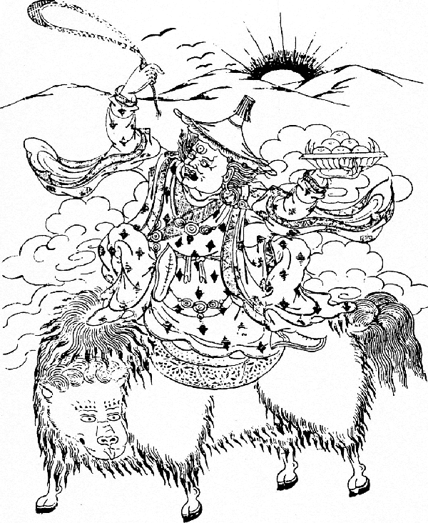 Такова история этого великого защитника Дхармы, который был подчинён Авалокитешварой и молился вместе с этим бодхисаттвой. Он и поныне остаётся верным обетам защитником Дхармы. В частности, он является одним из древнейших богов в собрании Девяти Богов Тибета.