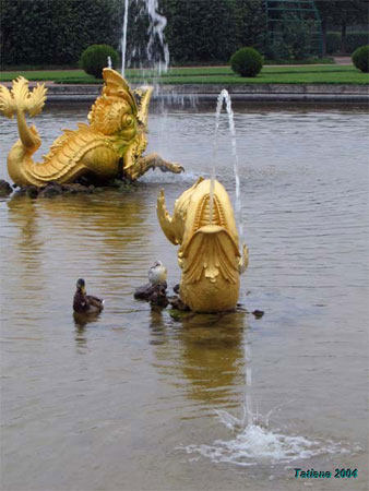 Гуляя по паркам Петергофа (Двора Петра) некоего маленького русского Версаля на берегу Балтийского моря, мы обратили внимание на фигурку дельфина у ворот Верхнего сада. Больно необычен был образ чешуйчатого зверя с трехлистным «оперением» хвоста.