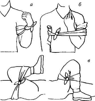 Временной остановки кровотечения при быстрой транспортировке пострадавшего в больницу можно достичь при помощи максимального сгибания конечностей (рис. 9).