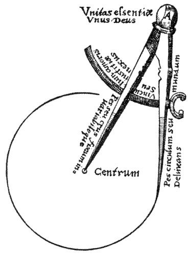 16а. Мистический циркуль. Из книги Роберта Фладда «История… обоих миров», II (I), с. 28.