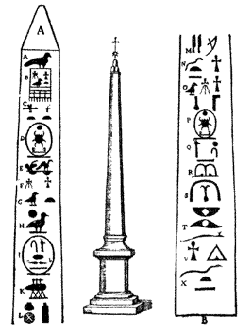 16б. Гелиополитанский обелиск. Из книги Афанасия Кирхера «Памфилийский обелиск», Рим, 1650, с. 371.