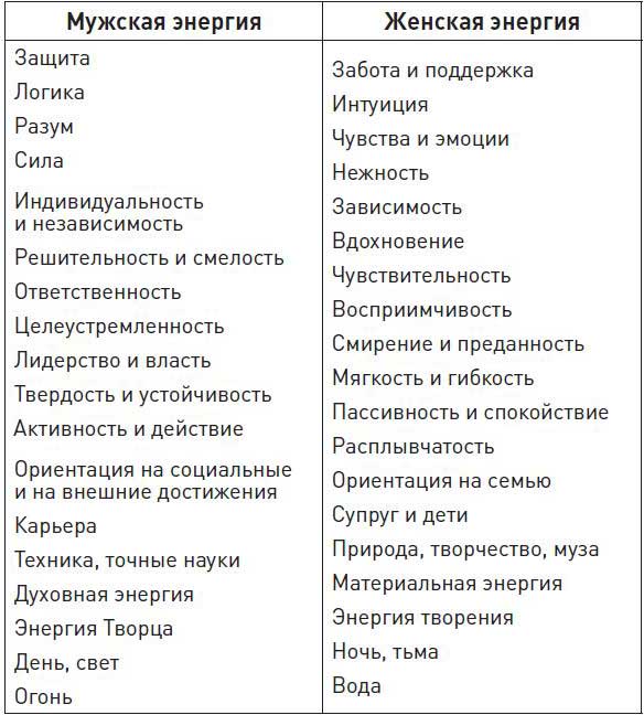 В основу таблицы положены качества, которые упоминаются в Ведической психологии, Каббале, Ведической астрологии, Христианстве и инь-янь в Буддизме.