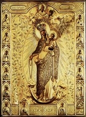 Ирмо?с: Отве?рзу уста? моя?, и напо?лнятся Ду?ха, и сло?во отры?гну Цари?це Ма?тери, и явлю?ся, све?тло торжеству?я, и воспою?, ра?дуяся, Тоя? чудеса?.
