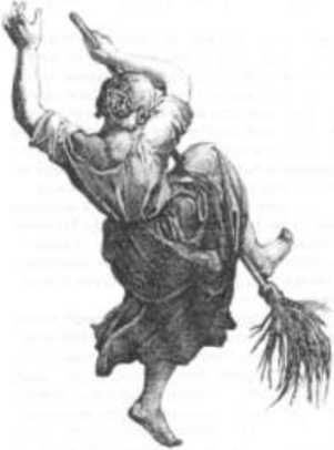 В наши дни царит справедливое мнение, что главным приспособлением для полётов считалась метла. Однако так было не всегда. Поначалу на роль транспортного средства с равным успехом претендовали палка, вилы, рогатина, ручная прялка и даже полотенце. Трактат 1450 года настаивал, что палка и горшочек с мазью выдастся каждой ведьме после того, как она поцелует Сатану (Robbins, 1959 стр. 511). Заклинание в те ранние времена будто бы звучало так. «Поехали, во имя дьявола, поехали (Lea, 1939 стр. 239)!» Судья Анри Боге, гроза ведьм и оборотней, выяснил, что одна колдунья летала «на белой скамье, которую помещала меж ног», — эта информация была оглашена в 1602 году (Robbins, 1959 стр. 511). А норвежская ведьма Карей Торсдаттер спустя полвека призналась, что в возрасте 26 лет поступила в услужение к Люциферу и летала на коте. Сообщницы её выбрали кочергу и телёнка (1958 стр. 361).