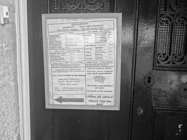 Во время моих прогулок по Стамбулу, спускаясь от Башни Галата по одному из крутых переулков к набережной, я увидел вывеску с названием ресторана Galata House. Вывеска красовалась перед входом в обычный квартирный подъезд. Рядом, как полагается в ресторанах, было вывешено меню, где указывалось, что кухня эта — русско-татарская, что в Стамбуле меня, естественно, заинтересовало. Я долго жал кнопку звонка, и дверь наконец открыли. Перед входом меня встретила пожилая пара. Ресторан был совершенно пуст. Более того, помещение было похоже на частную квартиру. Точнее, на отдельный квартирный дом в три этажа. Был и дворик. Там любезные владельцы этого помещения указали мне на надпись на крышке канализационного люка. Это была явно лондонская фирма. Пожилая пара не могла больше скрывать от меня свой семейный секрет. Выяснилось, что этот дом — помещение бывшей британской тюрьмы прошлого века при британском консульстве. Султан даровал британской короне право сажать в кутузку британских подданных, нарушивших закон в Стамбуле: это была своего рода исламская шаария (самоуправление) в стамбульском варианте для британцев. Тюрьма давно закрылась, и сообразительный стамбульский архитектор Мете вовремя купил это помещение, а выйдя на пенсию, вместе со своей супругой Назирой превратил бывшую тюрьму в домашний ресторан-клуб. Здесь любят собираться стамбульские архитекторы. Мне дали рюмку водки, а Назира уселась за обшарпанное пианино. Разложила старые ноты, не по возрасту лихо вдарила по клавишам и вдруг запела: «Я люблю тебя, жизнь, и надеюсь, что это взаимно». То есть звучало это не так четко, но фонетически близко.