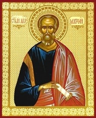 Ве?трилом, блаже?нне, Креста? преше?д волнующееся мо?ре жития,/ достигл еси? ко приста?нищу покоя и кра?йнему жела?нию/ и, ра?дуяся, ны?не предстои?ши со апостольским ликом,/ моля о нас Человеколюбца.