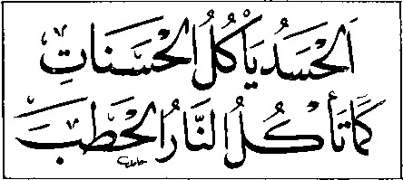 «Зависть пожирает все добрые чувства, как огонь — дрова». Этот афоризм пророка Мухаммада выражает еще одну установку мусульманской этики: нельзя завидовать ближнему, если тот в чем-либо преуспел; зависть делает человека жалким, она подтачивает его душу, умаляет веру в высшую справедливость Аллаха.