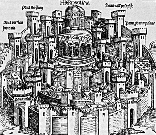 Вид святого Града Иерусалима эпохи Крестовых походов. Средневековая книжная миниатюра