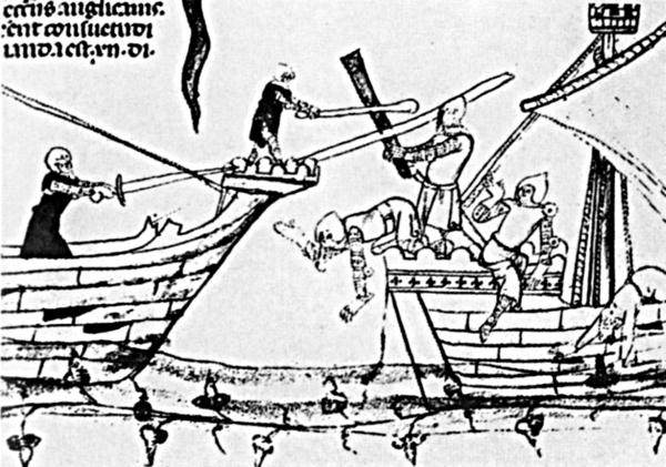 Храмовники в морском бою. Средневековая книжная миниатюра